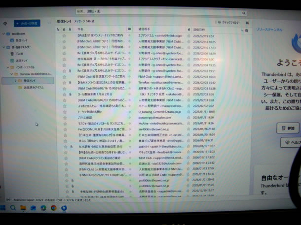 後は、お客様にお渡しするため、これから使う予定のサンダーバードメールへメール内容をインポートして完了です。